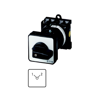 Μεταγωγικός διακόπτης 1-2, 6 επαφών, 20Α, Στήριξη του διακόπτη σε ράγα Ω με χειριστήριο στην πόρτα του πίνακα
