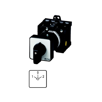 Διακόπτης αναστροφής 1-0-2, 4 επαφών, 32Α, Στήριξη του διακόπτη σε ράγα Ω με χειριστήριο στην πόρτα του πίνακα